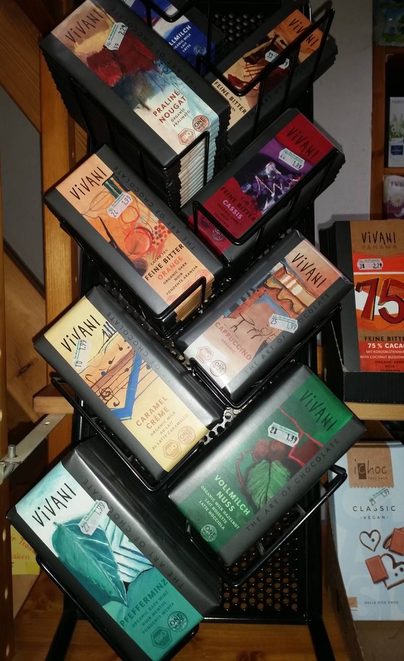 Vivani is als merk inmiddels al zo’n 15 jaar in de biologische winkelschappen verkrijgbaar, en ondertussen in meer dan 50 landen wereldwijd. Er gaat veel tijd en energie naar het realiseren van de best mogelijke kwaliteit en naar steeds weer nieuwe recepturen, ook om steeds weer geen synthetische aromo’s noch goedkope smaakstoffen hoeven te gebruiken. In de chocoladefabriek van Vivani maken we gebruik van ruim 100 jaar ervaring, en leggen we de focus op het gebruik van de best mogelijke kwaliteit van biologische grondstoffen die er voorhanden zijn. Dankzij de enorme volumes kunnen wij zowel de consument een gunstige verkoopprijs als de boer een zeer faire prijs aanbieden.